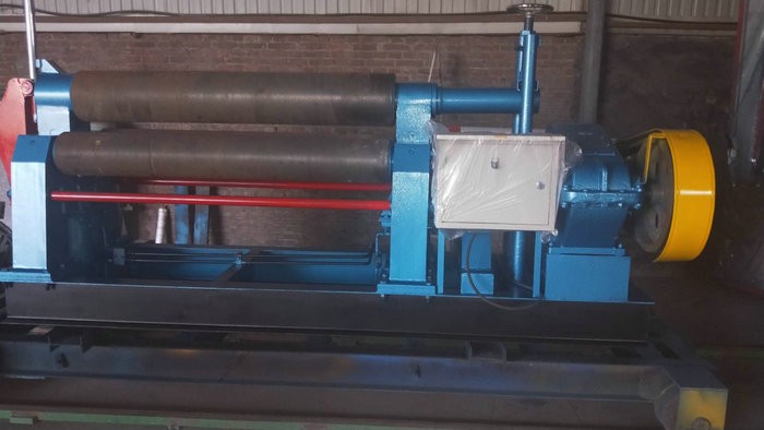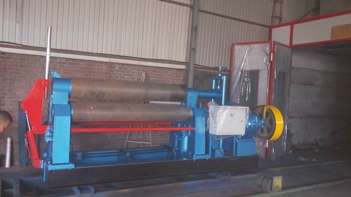 液压下拉式卷板机主要特点:该机上辊可以垂直升降,垂直升降的液压传动,通过液压缸内的液压油作用活塞杆而获得;下辊作旋转驱动,通过减速机输出齿轮啮合,为卷板提供扭矩,下辊下部有托辊,并可调节。上辊呈鼓形状,提高制品的直线度,适用于超长规格各种截面形状罐。 其主要产品为系列钢卷开平生产线、横剪线、挍平机、矫平机、剪板机、卷板机、法兰机、液压压力机等。
